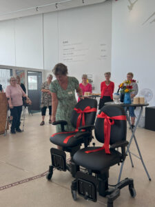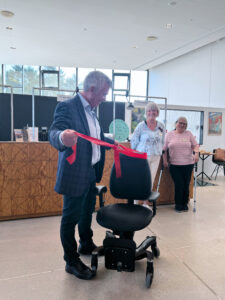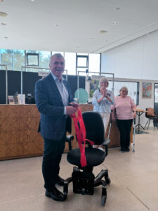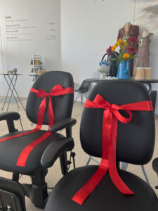 Der er blandt andet indkøbt to splinternye specialstole, som vil gøre en kæmpe forskel. Stolene skal understøtte arbejdsstillinger Nu får vores frivillige bag skranken i Velkomstcentret en langt bedre arbejdsstilling, og vi kan sikre at alle - uanset alder og mobilitet - kan være med i fællesskabet.